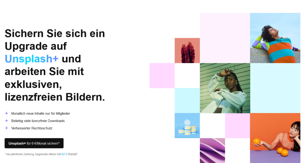 Unsplash+ ist eine Premium-Version der beliebten Unsplash-Plattform. Es ist ein Abonnementdienst, der zusätzliche Funktionen und Vorteile bietet, die über die kostenlosen Funktionen von Unsplash hinausgehen.